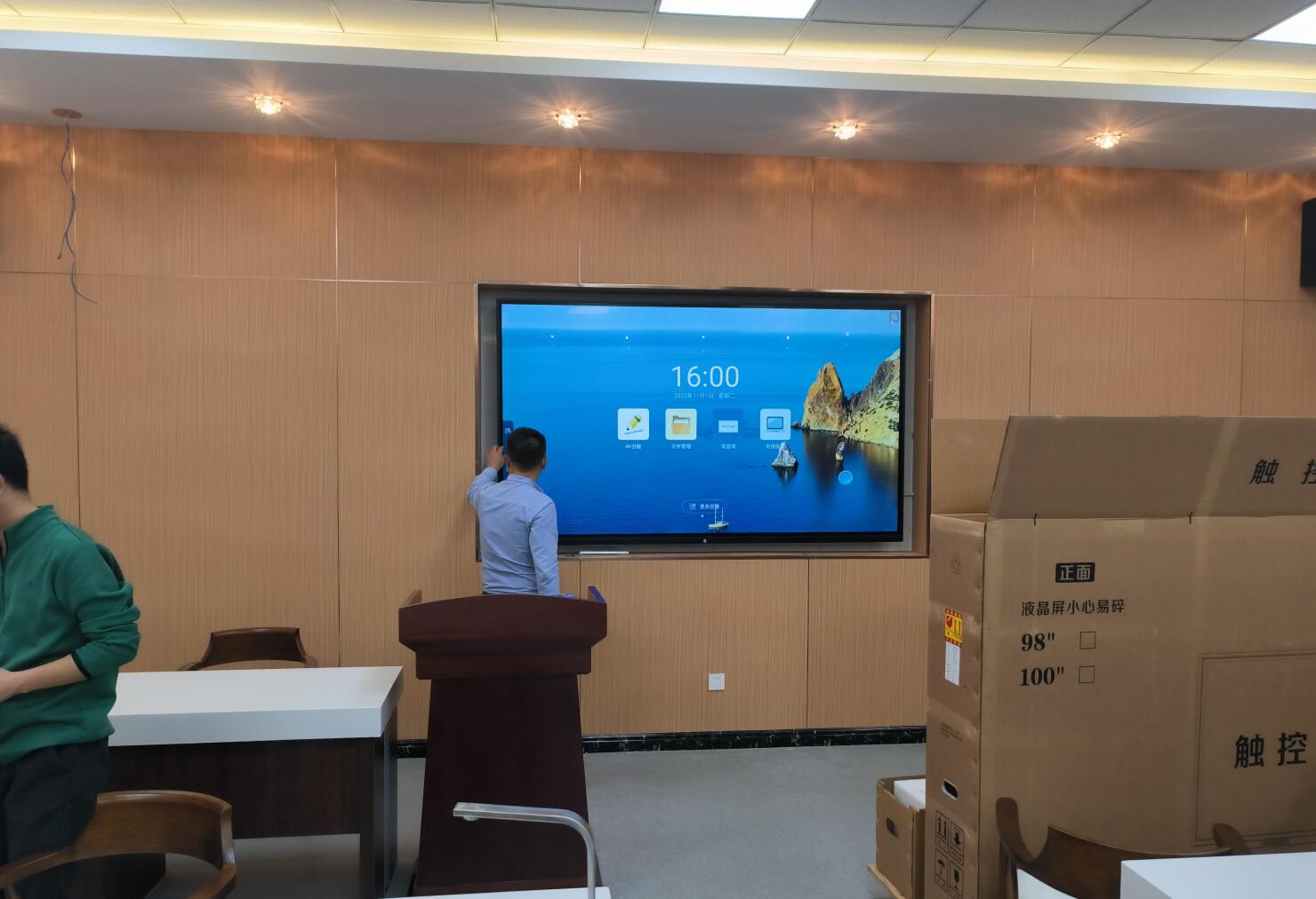 四川成都旅游学院100寸壁挂教学一体机安装现场