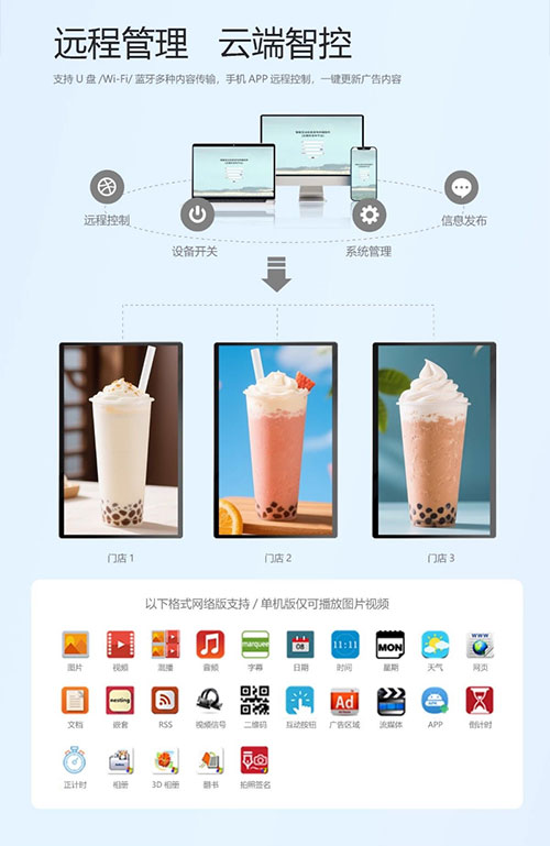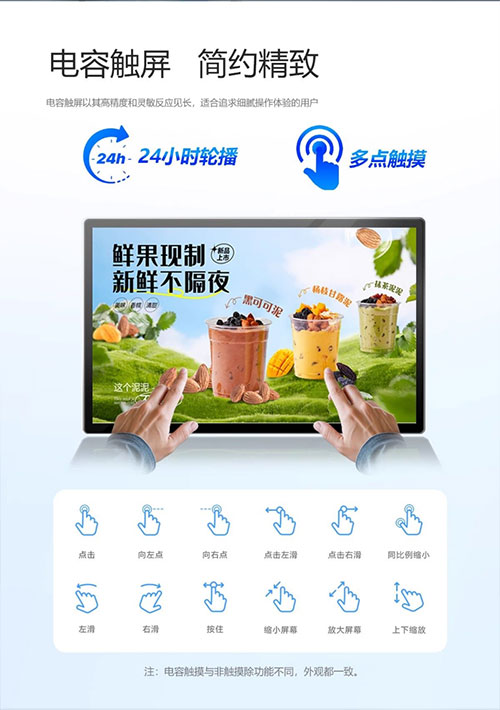 高清壁挂广告机海报屏横竖吊挂嵌入式安装电梯商铺餐饮店电子菜单红外电容触摸显示屏