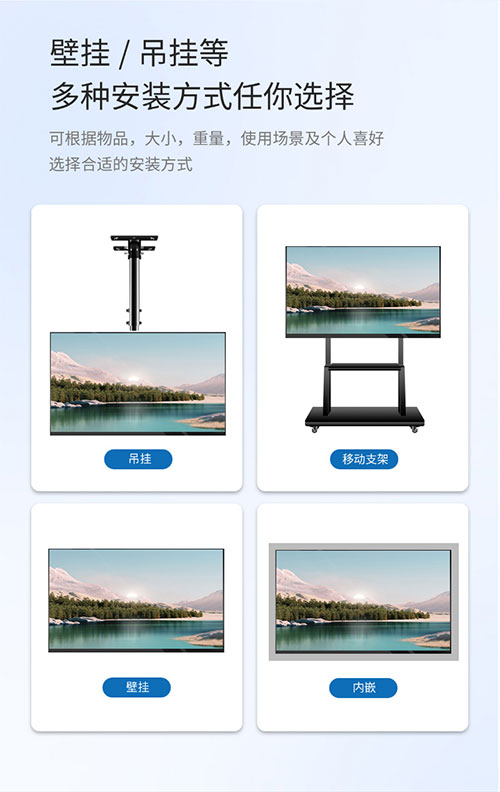 高清壁挂广告机海报屏横竖吊挂嵌入式安装电梯商铺餐饮店电子菜单红外电容触摸显示屏
