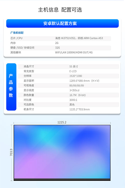 壁挂广告机显示海报信息发布屏电梯商场横竖嵌入吊挂液晶触摸4K高清
