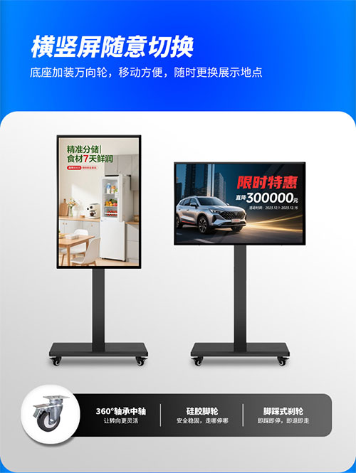 立式移动横竖屏广告机奶茶快餐服装酒店营业厅4S药店智能网络高清液晶电子水牌广告屏