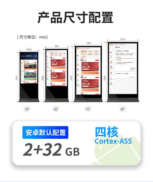 立式广告机4K高清显示屏电子水牌刷机信息发布屏商用网络智能触摸落地触控一体机