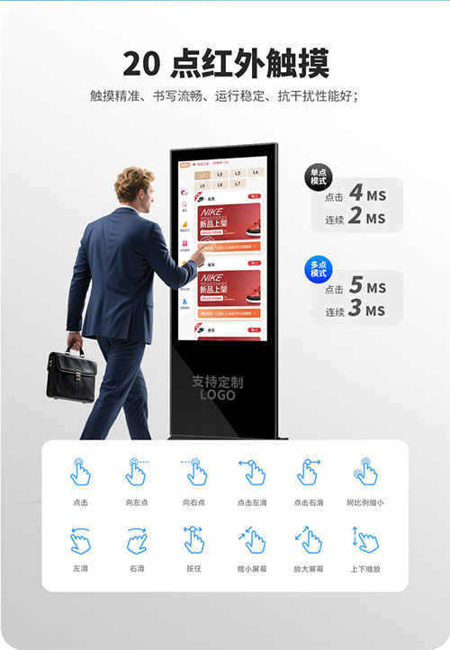 4K高清立式广告一体机酒店商场展厅火车站机场大厅联网智能红外触摸广告显示屏触控一体机