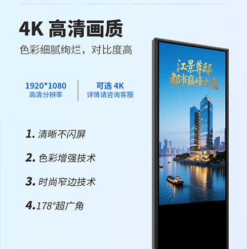 壁挂广告机显示海报信息发布屏电梯商场横竖嵌入吊挂液晶触摸4K高清