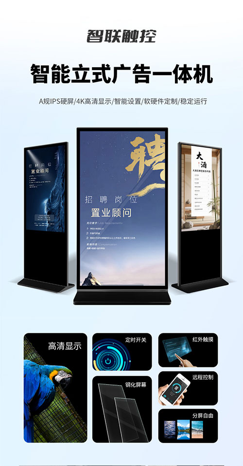 立式广告机4K高清显示屏电子水牌刷机信息发布屏商用网络智能触摸落地触控一体机