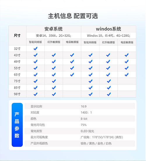 壁挂广告机显示屏WINDOS系统嵌入吊挂高亮红外触摸4K高清触控查询一体机