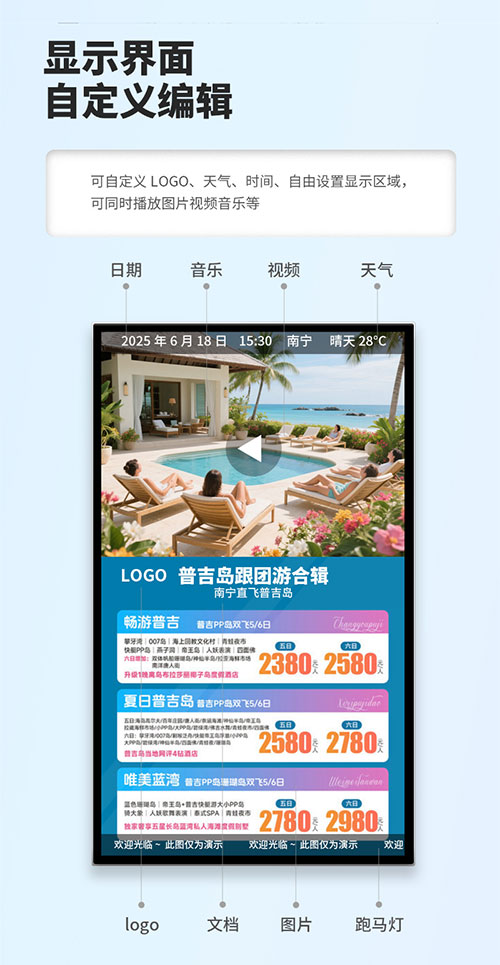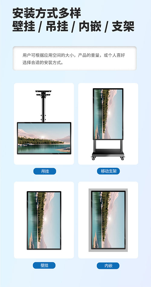 高清壁挂广告机海报屏横竖吊挂嵌入式安装电梯商铺餐饮店电子菜单红外电容触摸显示屏