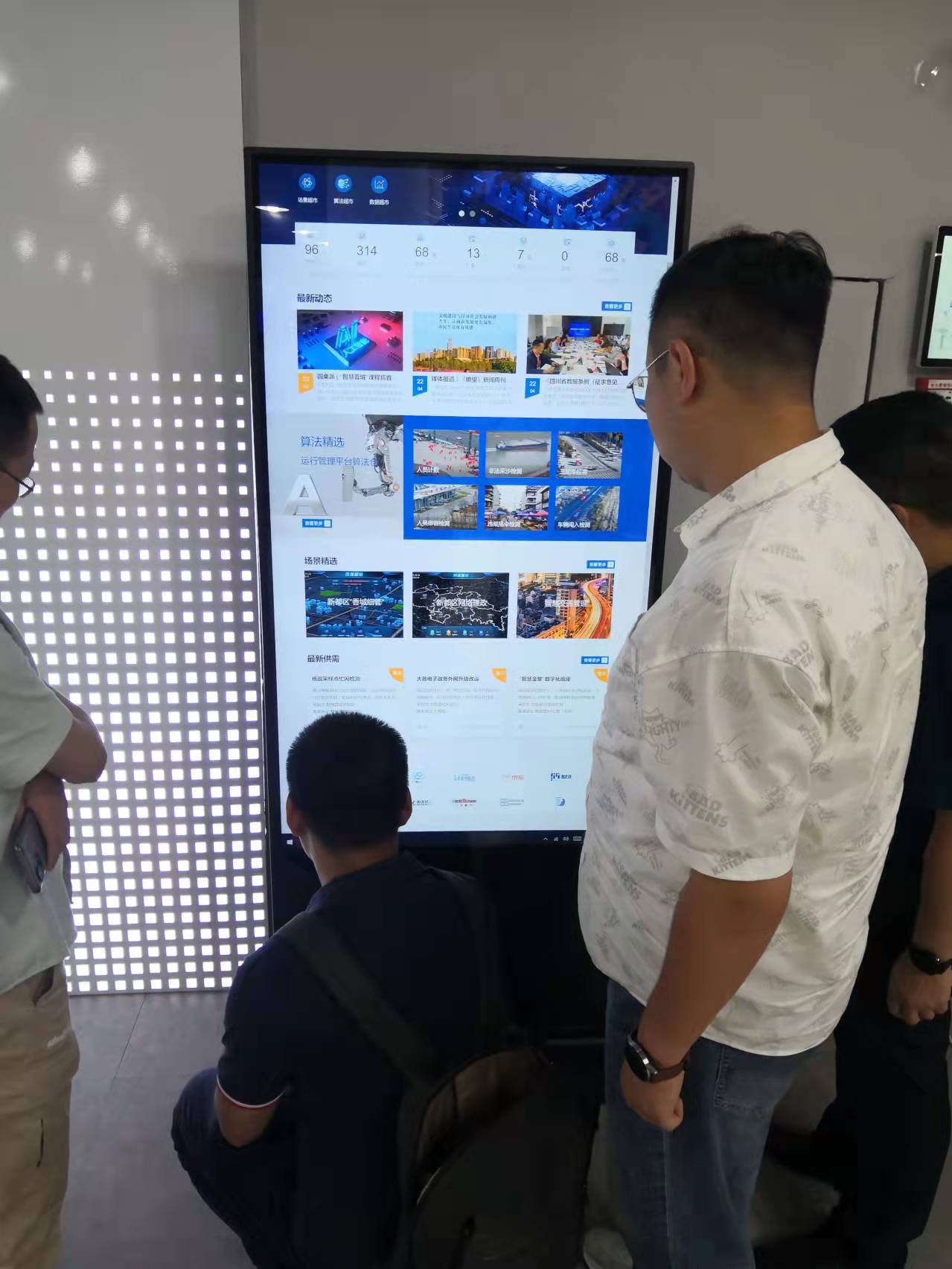成都智慧蓉城研究所65寸触摸立式一体机现场调试