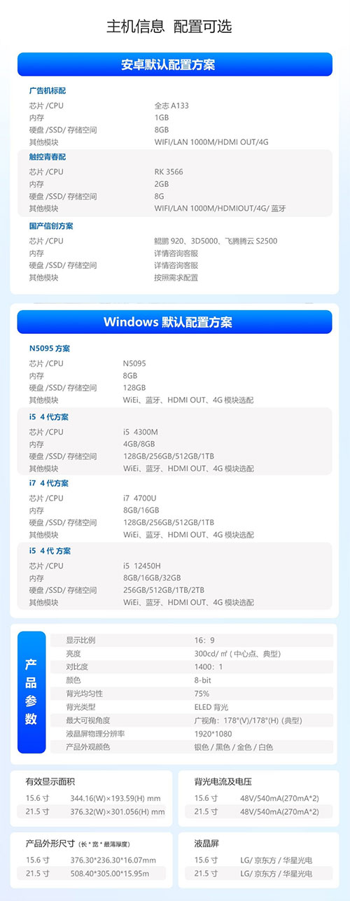 壁挂广告机显示屏WINDOS系统嵌入吊挂高亮红外触摸4K高清触控查询一体机