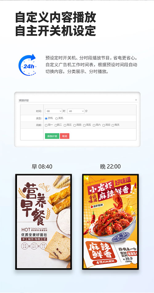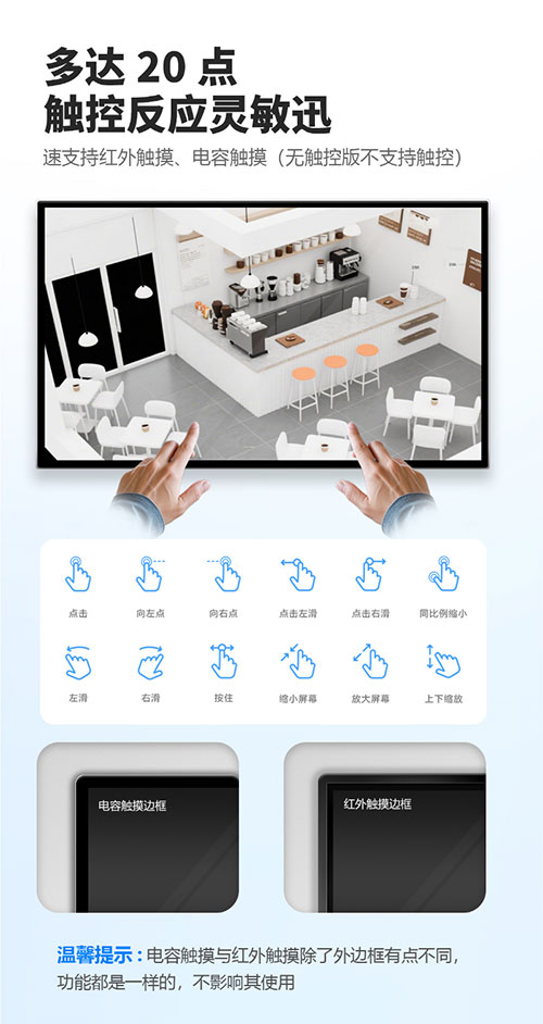 高清壁挂广告机海报屏横竖吊挂嵌入式安装电梯商铺餐饮店电子菜单红外电容触摸显示屏
